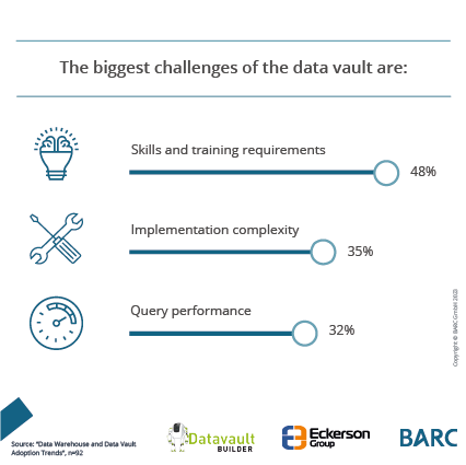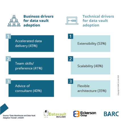 This survey report was executed by BARC and the Eckerson Group and examines data warehouse and data vault adoption trends in modern analytics environments, including architecture types, priorities, and automation. It recommends that companies double down on fundamentals such as data quality, adopt commercial automation tools, and learn more about the data vault. Best-in-class companies such as Datavault Builder set an example for others to follow.