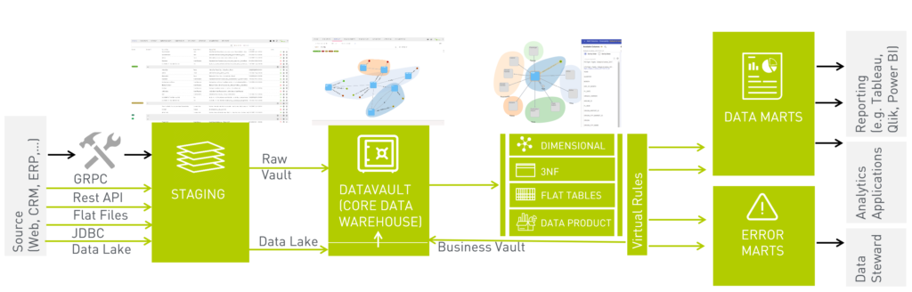 Flexible Extension with New Sources: Utilizes the data vault modeling technique for adaptability.